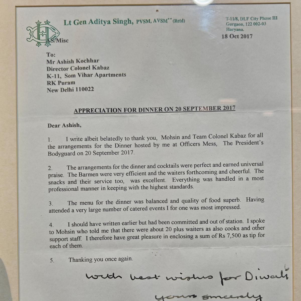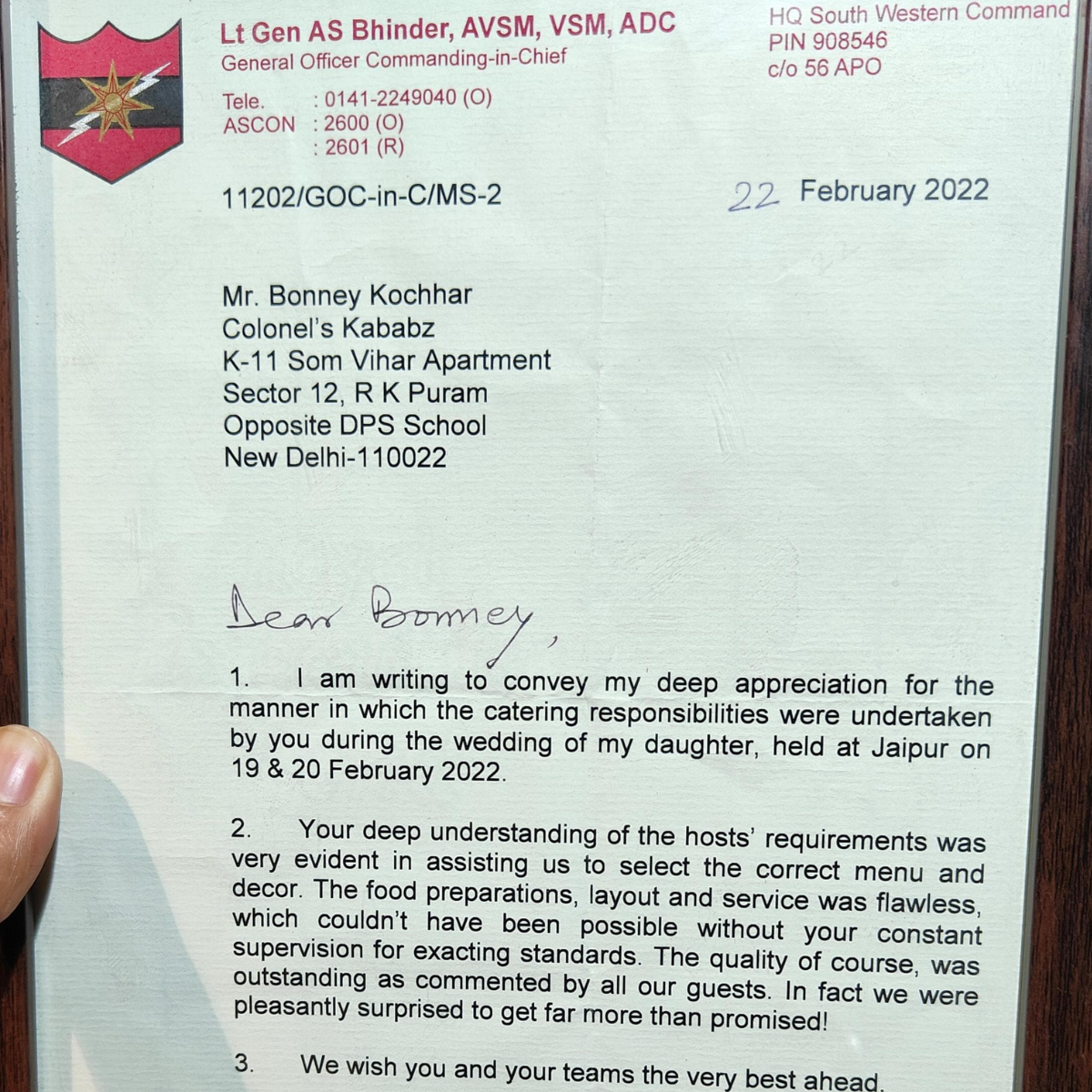Since 1990, we’ve proudly served from our display kitchens in iconic locations like Defence Colony, Som Vihar, NSCI Club, Pragati Maidan, and Delhi Cantt’s Sabre Officers Mess. Today, we carry forward the Colonel’s values of discipline, excellence, and hospitality in everything we do—from a small family celebration to a grand corporate gala.